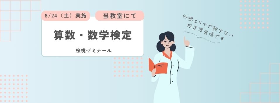 【数検】8/24(土)10時~『算数・数学検定』を当教室にて実施いたします!