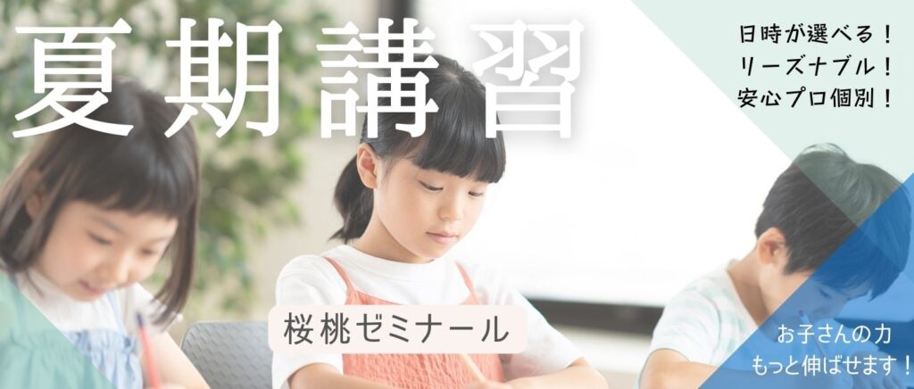 桜桃ゼミナールでは学校が夏休みの期間、受験対策や既習単元の復習の機会として季節ごとに講習を設けております。 当教室ではコマ数や科目を、ご希望の日時でお選びいただ…